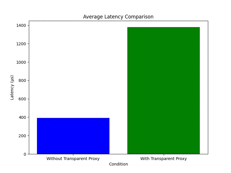 下面是基本性能测试,以评估该 eBPF 项目对主机服务器的影响,特别关注在拦截流量时的延迟和 CPU 负载情况。测试内容包括测量 10,000 次请求的平均延迟。