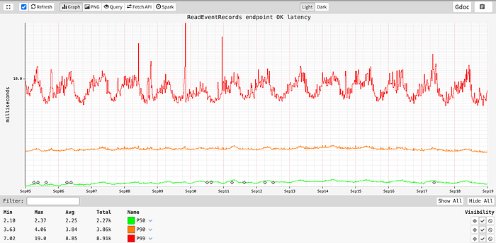 所有读操作都从默认的扇出因子开始,同时并行扫描 8 个分区桶。然而,如果服务层判定时间序列数据集较为密集(即大多数读取操作可以通过读取前几个分区桶来满足),就会动态调整未来读取操作的扇出因子,以减少底层数据存储上的读取放大现象。相反,如果数据集较为稀疏,则可能会适当提高限制值,并设置一个合理的上限。