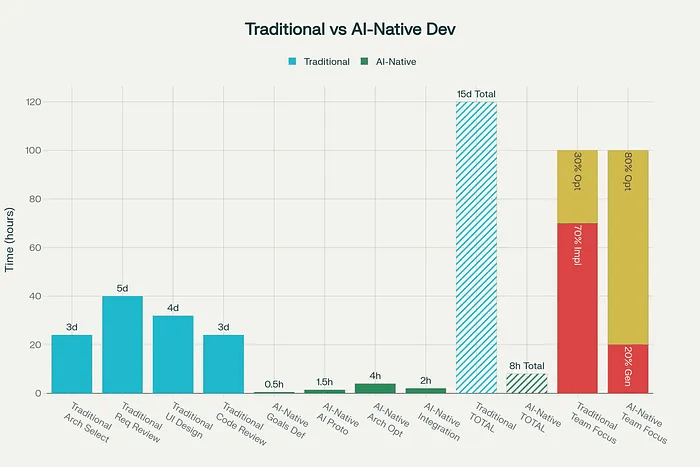 什么改变了?我们从“10 天的基础设施工作”变成了“用 8 小时搭建脚手架,然后用 1 天做架构”。