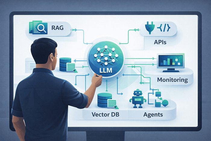 可以从 OpenAI、Anthropic 或开源项目中获取 LLM,给模型提供上下文,比如公司数据、用户历史、文档,给模型提供工具、数据库、API 和内部系统,然后让模型可靠、安全、高效且快速的工作,并将其部署到人们使用的产品或工作流程中。