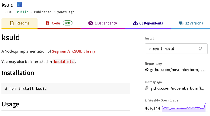 NPM:https://www.npmjs.com/package/ksuid