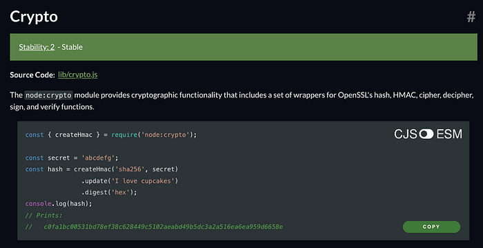 Node.js 内置:https://nodejs.org/api/crypto.html