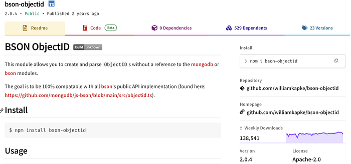 NPM:https://www.npmjs.com/package/bson-objectid